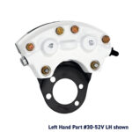 The External Single Caliper Brake assembly and disc combination (part of the main wheel assembly) are designed, and qualification tested to decelerate the aircraft properly and safely under various conditions. The brake assembly is an external floating caliper-type design and can be made of either cast magnesium or aluminum.