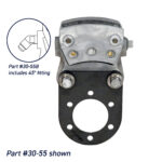 The External Single Caliper Brake assembly and disc combination (part of the main wheel assembly) are designed, and qualification tested to decelerate the aircraft properly and safely under various conditions. The brake assembly is an external floating caliper-type design and can be made of either cast magnesium or aluminum.