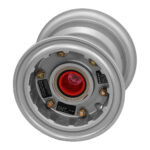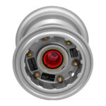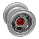 Wheels are made from either aluminum or magnesium castings, or aluminum forgings. Cleveland’s wheels are the divided type, incorporating an inner and outer wheel half, plus a disc, which are fastened together with tie bolts, washers, and nuts. The wheel rotates on two tapered roller bearings which seat in bearing cups, shrink fitted into the hubs. Molded grease seals provide protection and lubricant retention for the bearings. Hubcaps, when used, are secured to the outboard wheel half by a snap ring and screws.