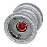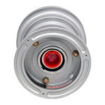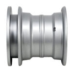 Wheels are made from either aluminum or magnesium castings, or aluminum forgings. Cleveland’s wheels are the divided type, incorporating an inner and outer wheel half, plus a disc, which are fastened together with tie bolts, washers, and nuts. The wheel rotates on two tapered roller bearings which seat in bearing cups, shrink fitted into the hubs. Molded grease seals provide protection and lubricant retention for the bearings. Hubcaps, when used, are secured to the outboard wheel half by a snap ring and screws.